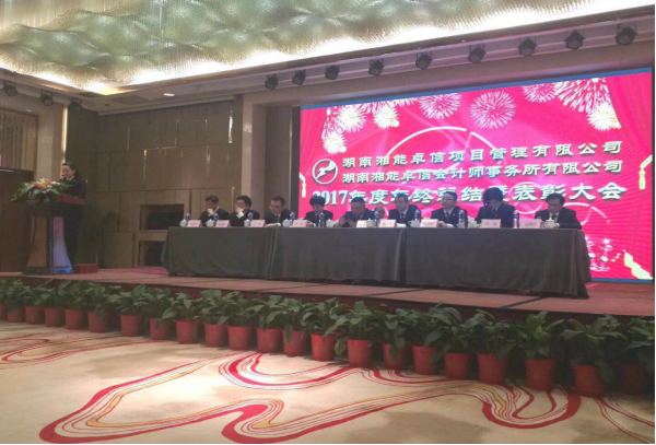 2018年2月13日,湖南湘能卓信項(xiàng)目管理有限公司和湖南湘能卓信會(huì)計(jì)師事務(wù)所有限公司在融程花園酒店召開(kāi)了2017年年終總結(jié)暨表彰大會(huì),會(huì)議由辦公室主任徐旺興主持,集團(tuán)全體員工參加。
