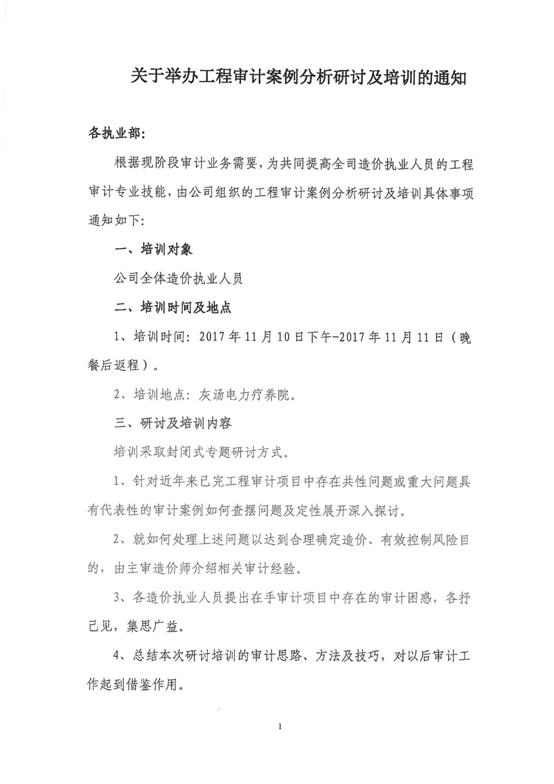 關(guān)于舉辦工程審計(jì)案例分析研討及培訓(xùn)的通知